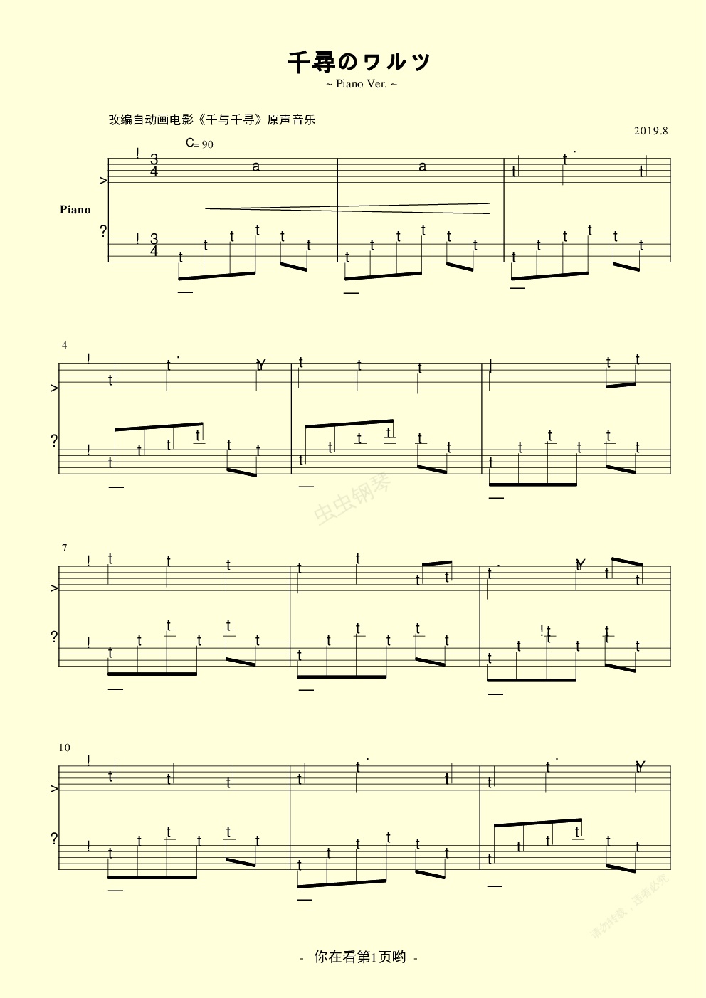 钢琴谱:【千与千寻】千尋のワルツ ~ Piano Ver. ~