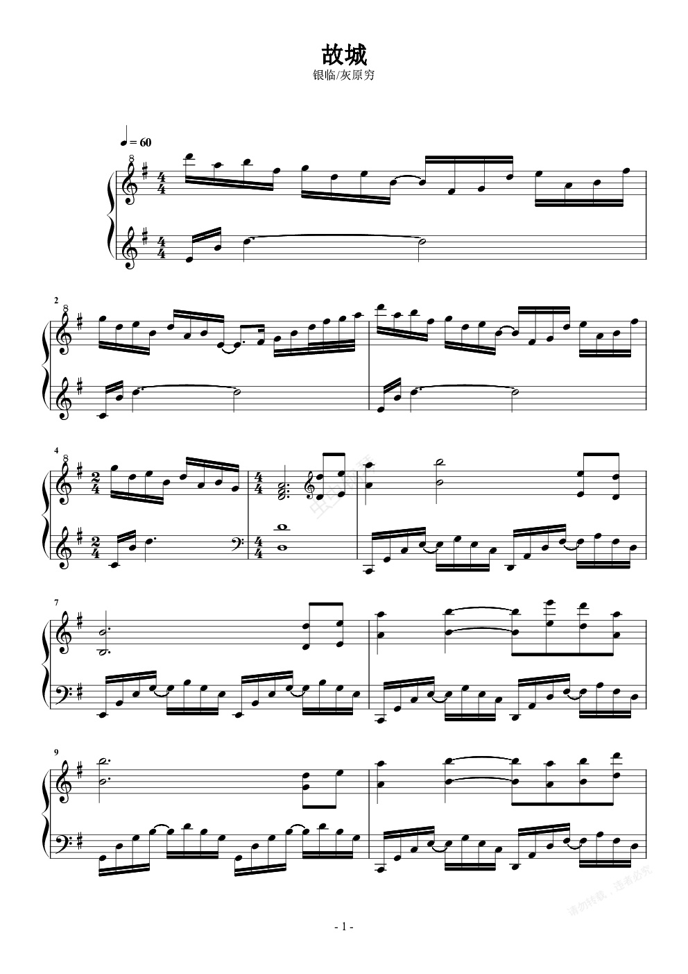 钢琴谱:故城