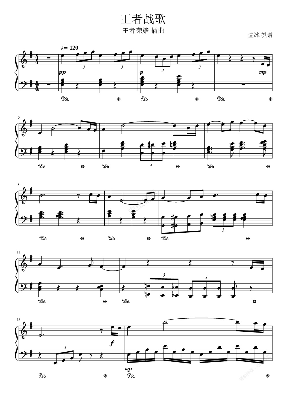 钢琴谱:王者战歌//王者荣耀 主题曲