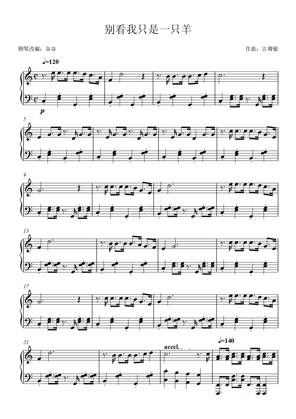 钢琴谱:别看我只是一只羊(喜羊羊与灰太狼)