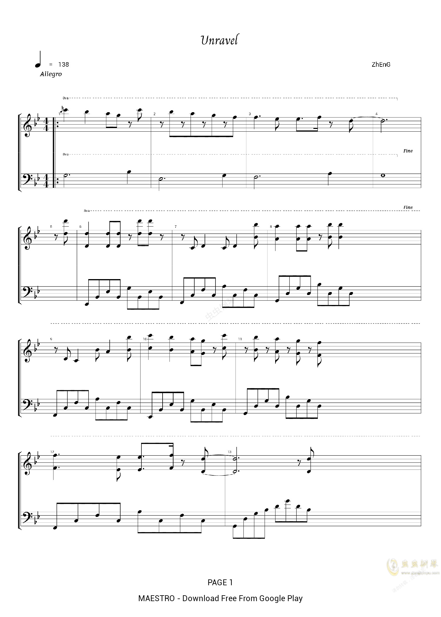 钢琴谱:Unravel