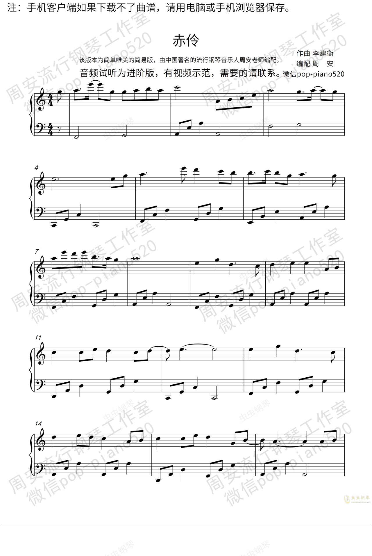 钢琴谱:《赤伶》唯美钢琴版(周安老师)
