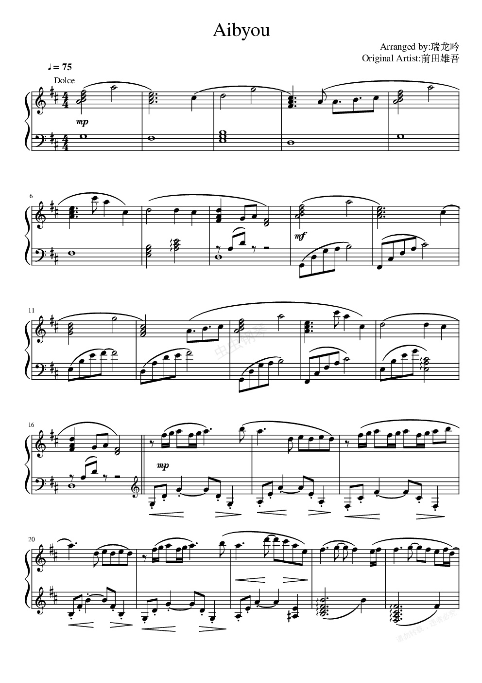 钢琴谱:巧克力与香子兰游戏OST Aibyou