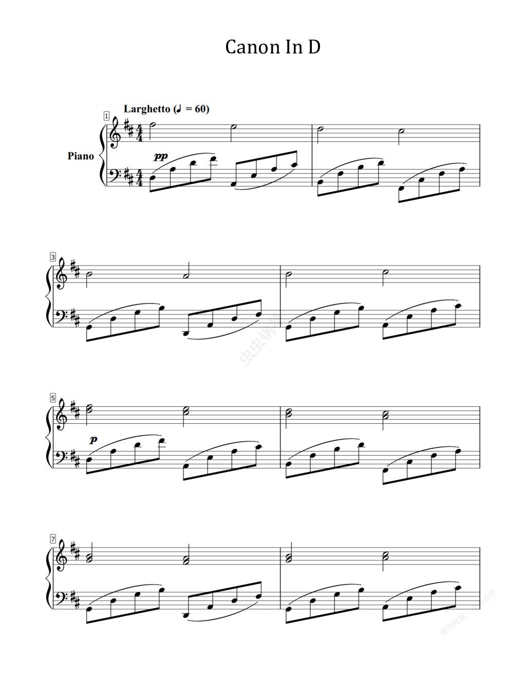 钢琴谱:Canon in D(Lee Galloway改编)