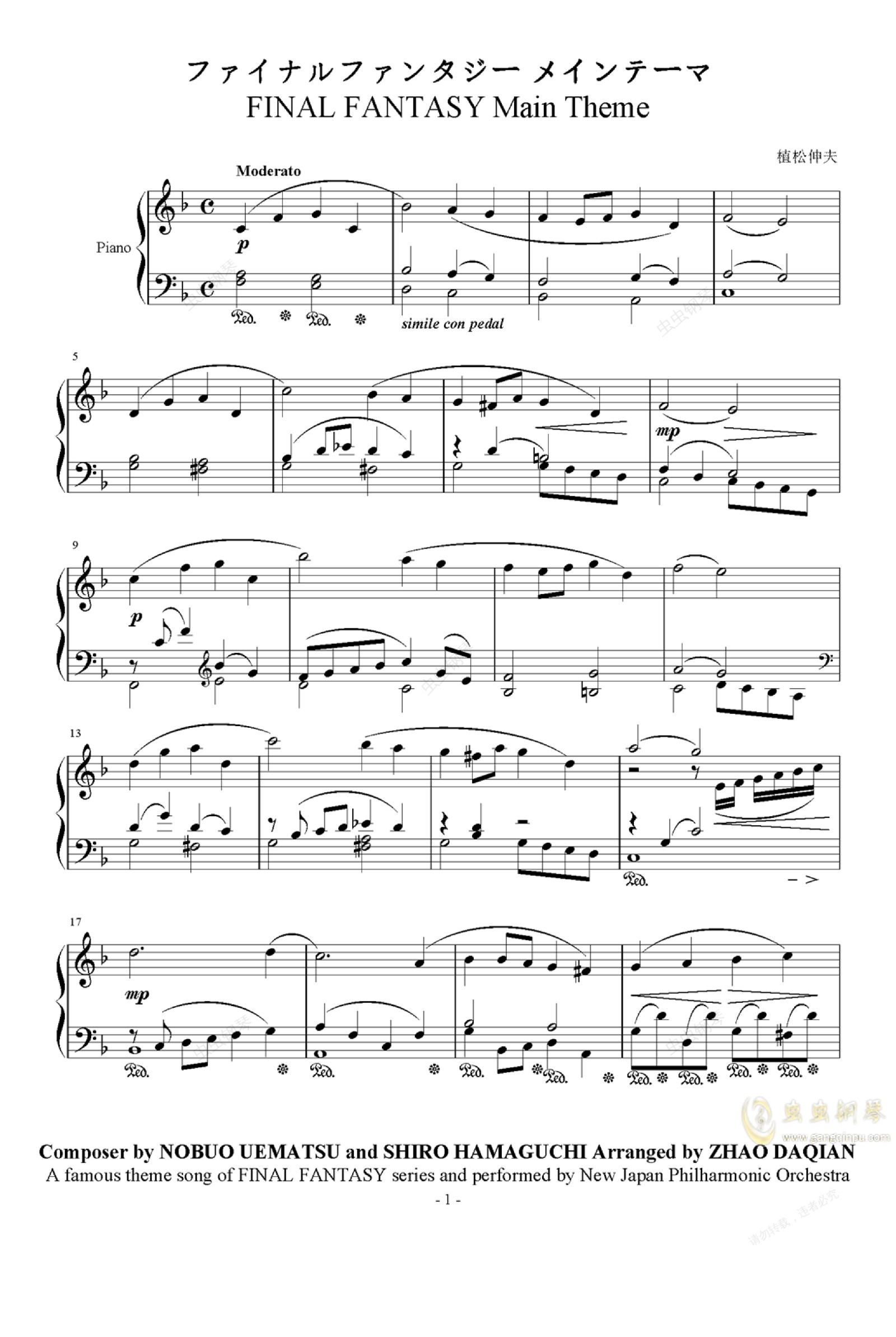 钢琴谱:最终幻想历代主题音乐
