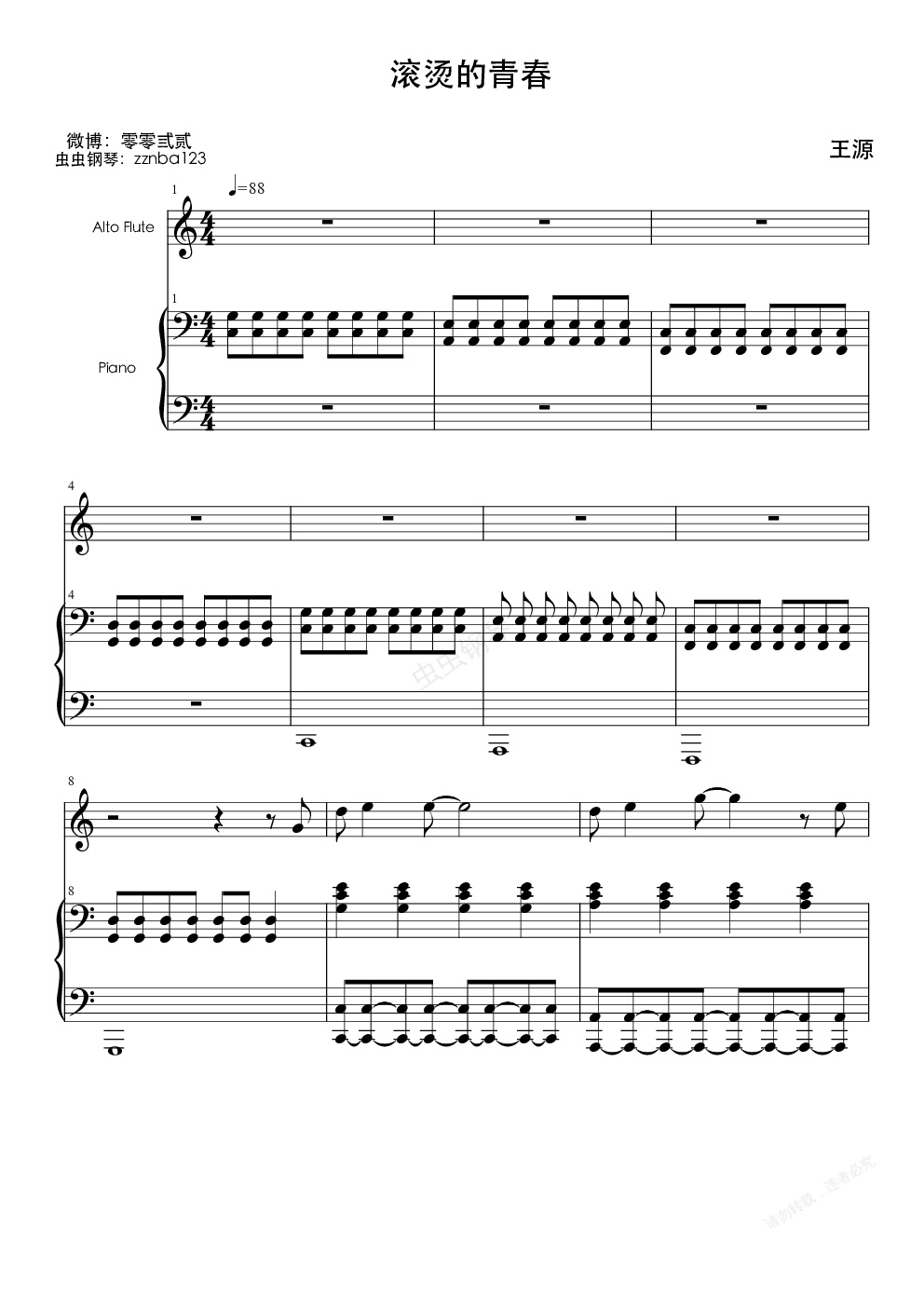 钢琴谱:低碳伴奏——《滚烫的青春》