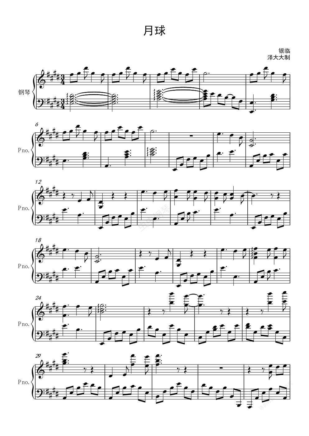 钢琴谱:月球(完美独奏版)