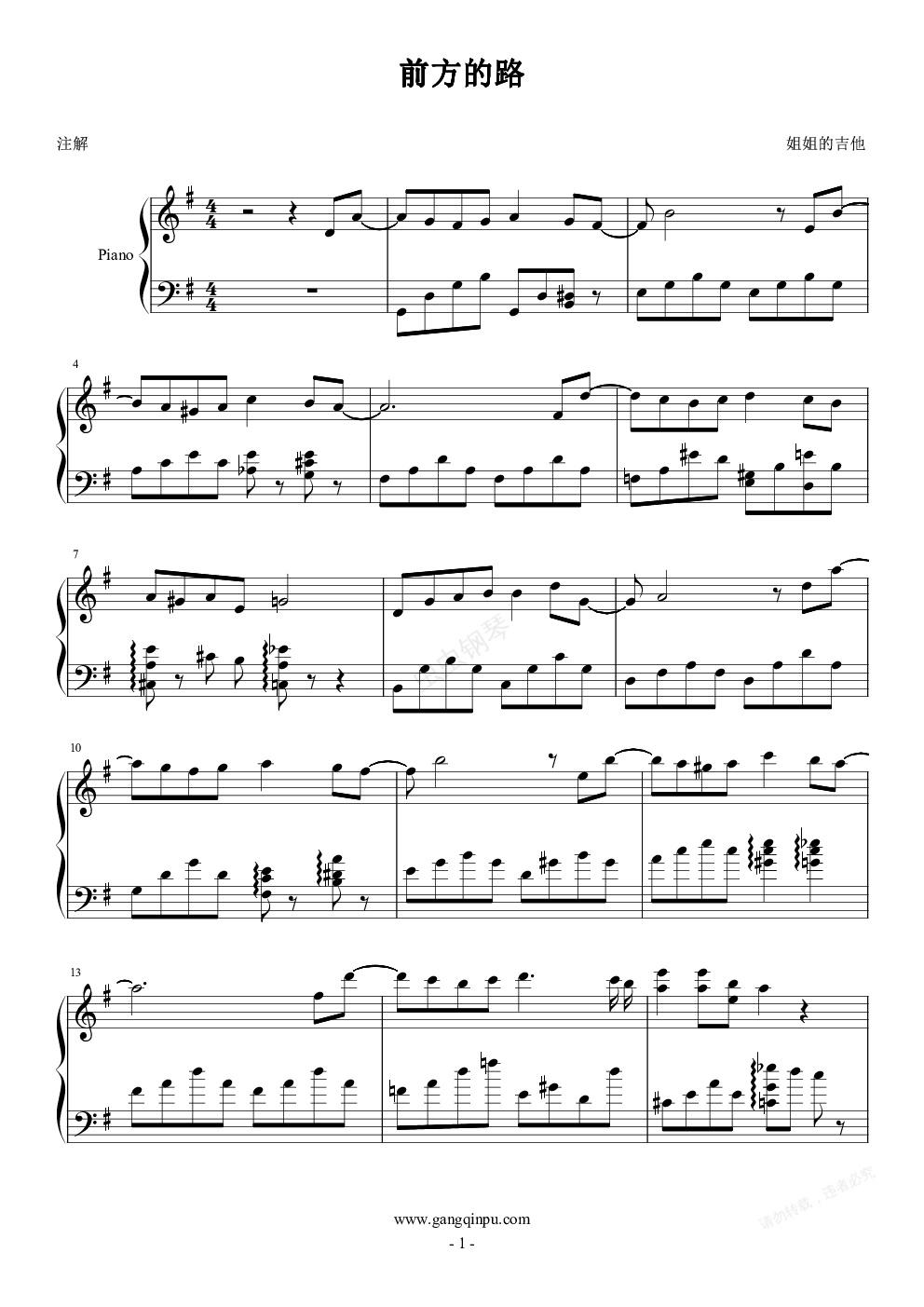 钢琴谱:前方的路