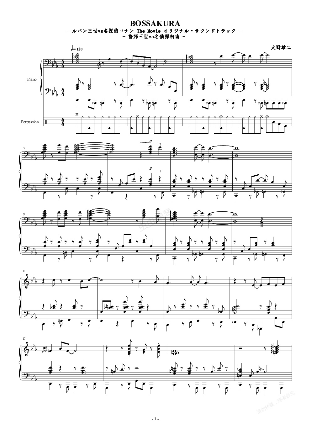 钢琴谱:BOSSAKURA 鲁邦三世vs名侦探柯南