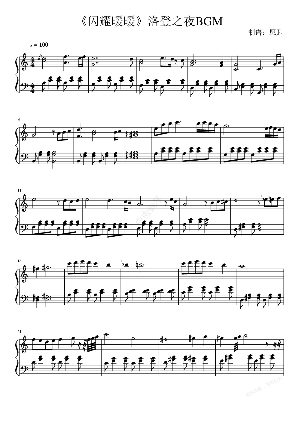 钢琴谱:《闪耀暖暖》洛登之夜BGM