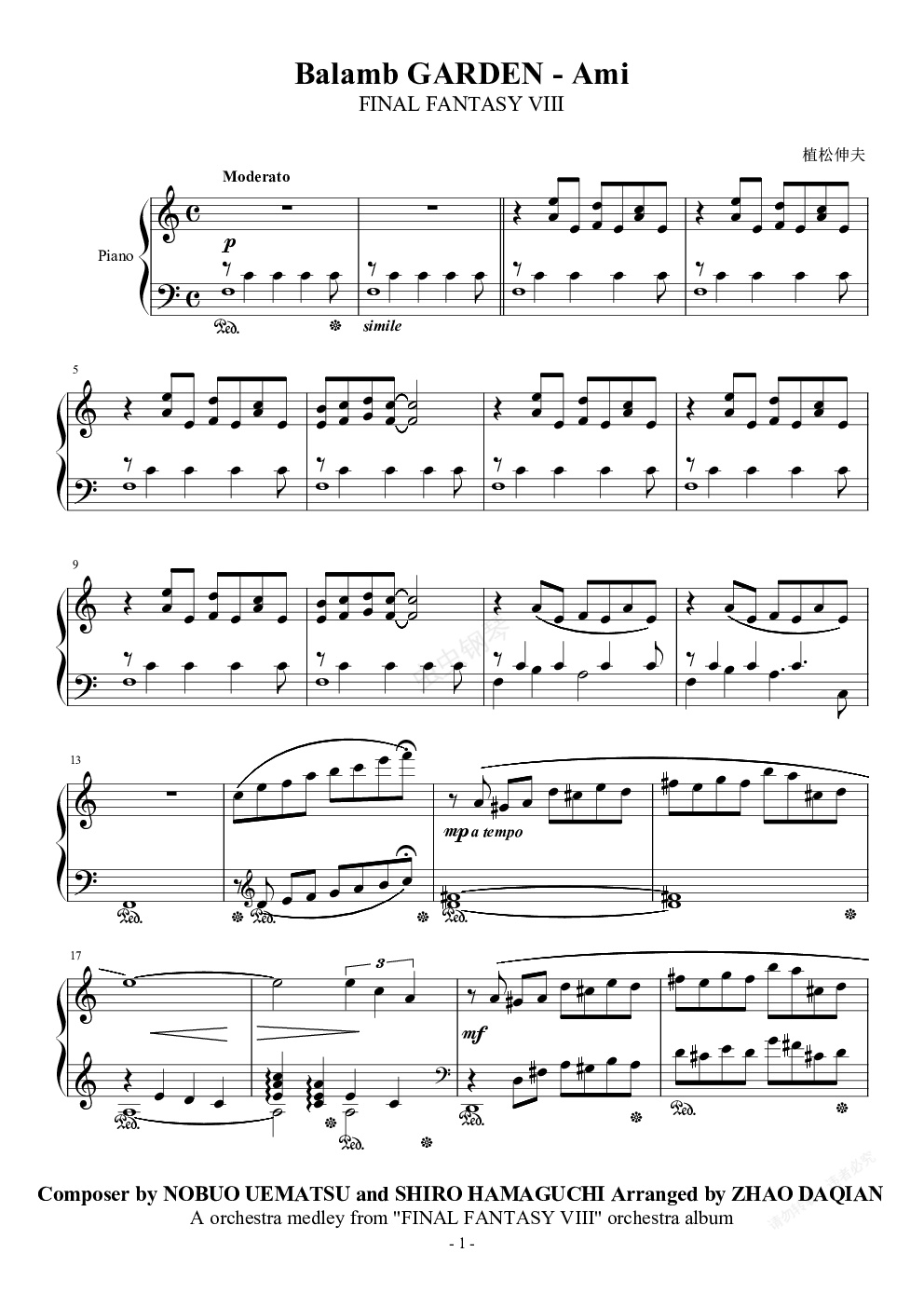 钢琴谱:Balamb GARDEN - Ami(最终幻想8交响乐组曲)