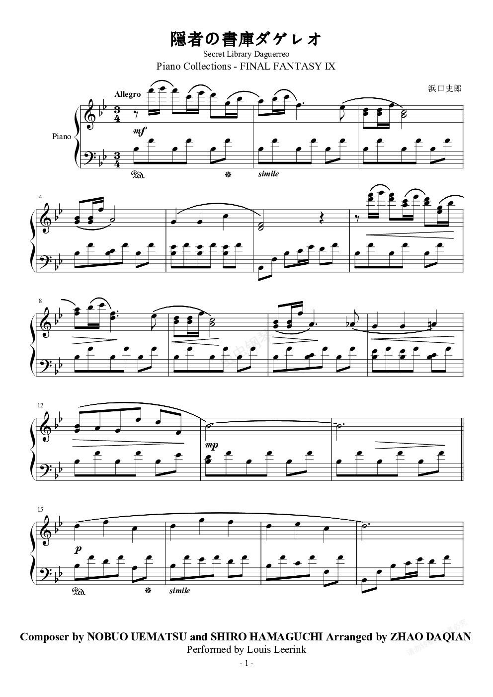 钢琴谱:【FFIX】隐者的书库 Daguerreo