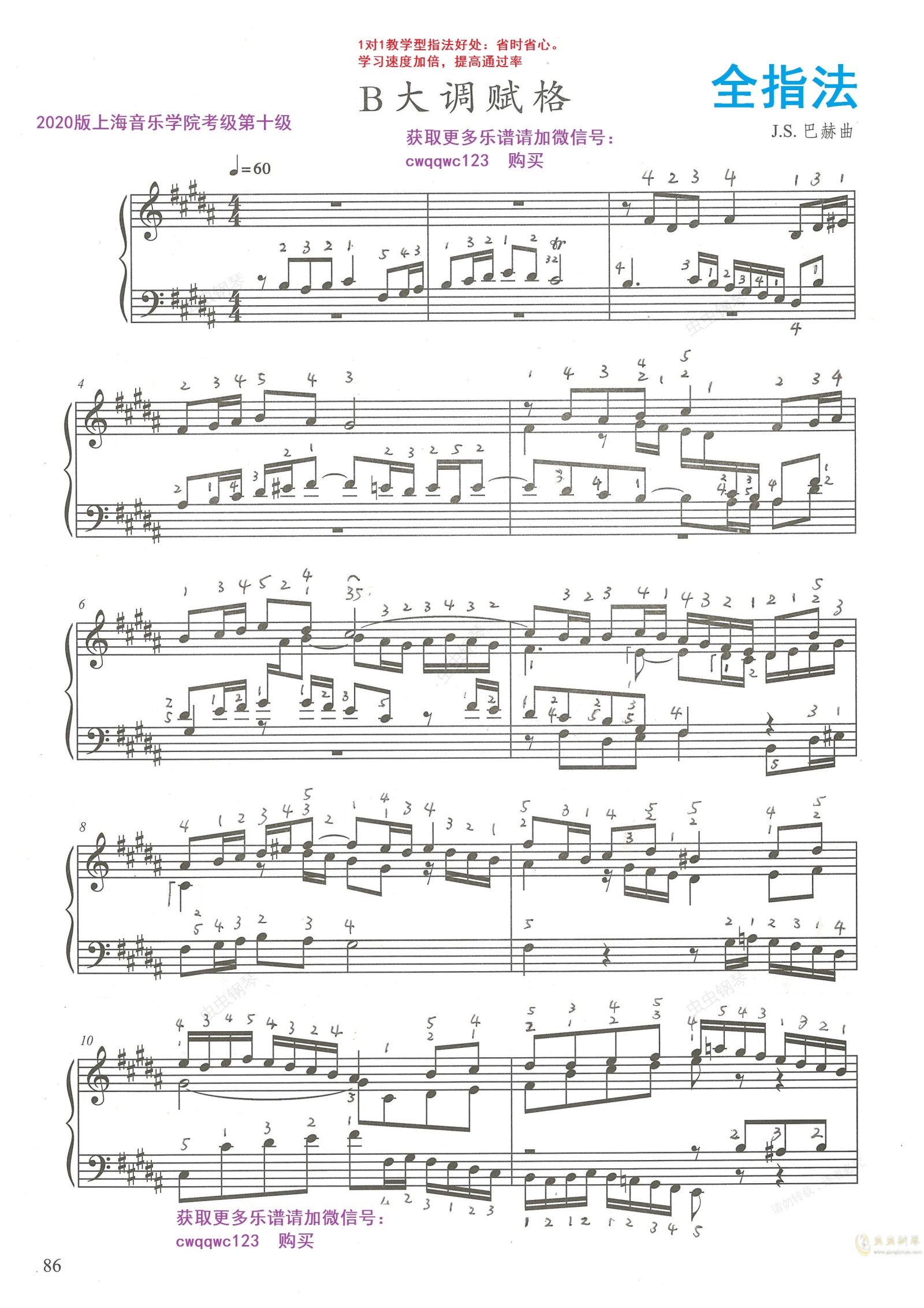钢琴谱:(上音十级)B大调赋格巴赫