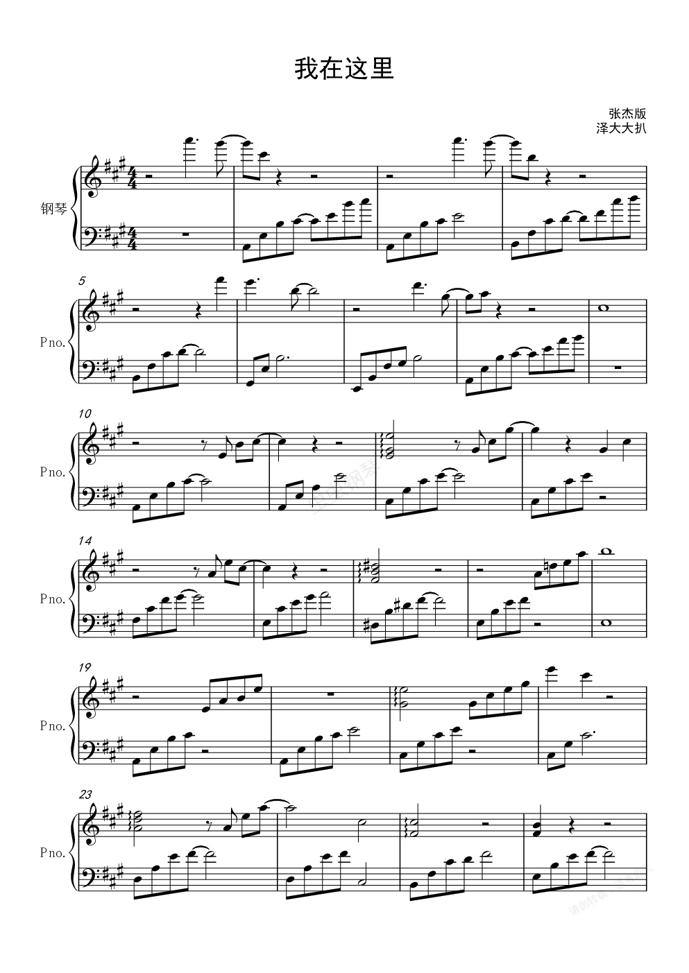 钢琴谱:我在这里(完美伴奏版)