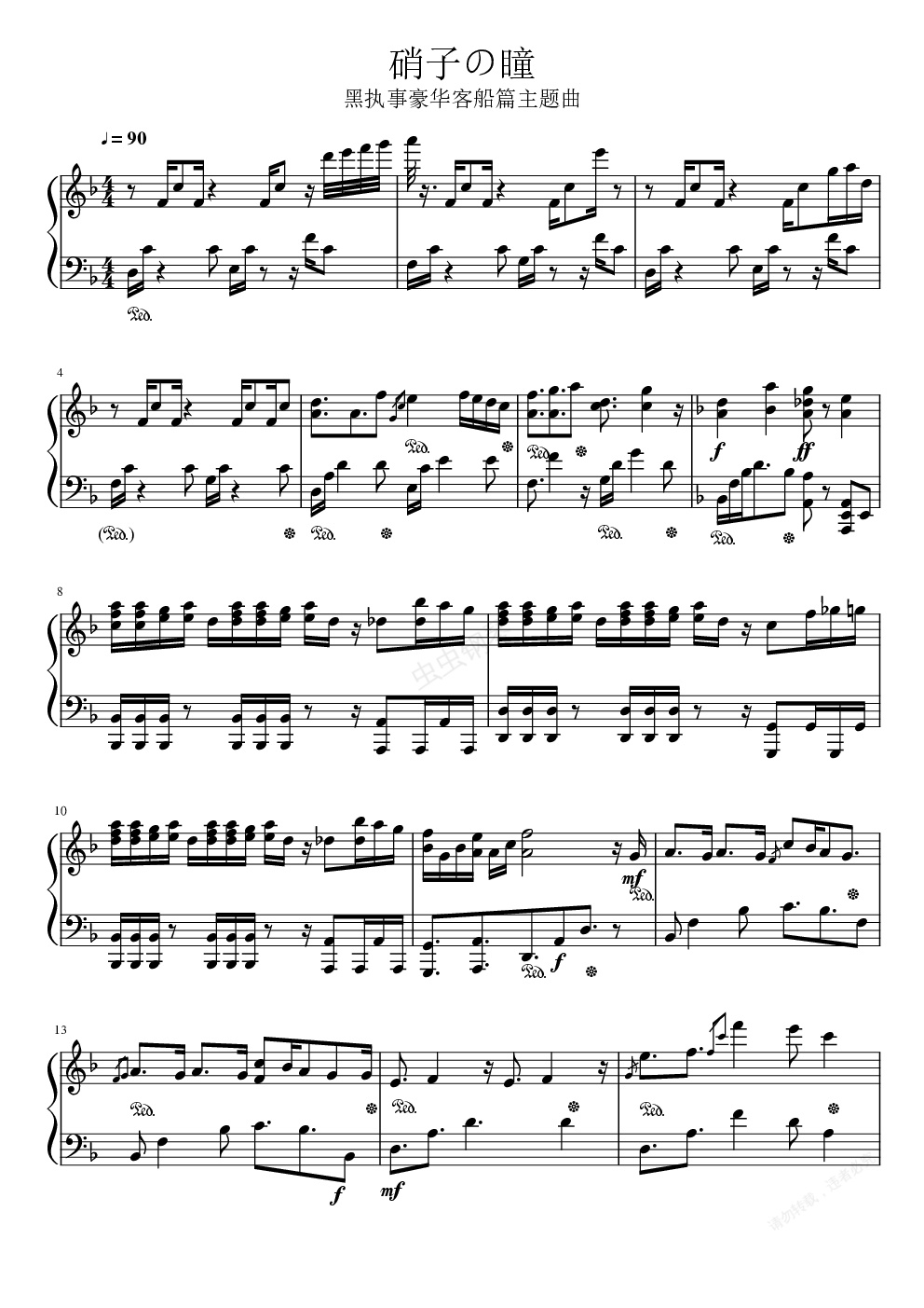 钢琴谱:黑执事豪华客船篇主题曲--硝子の瞳