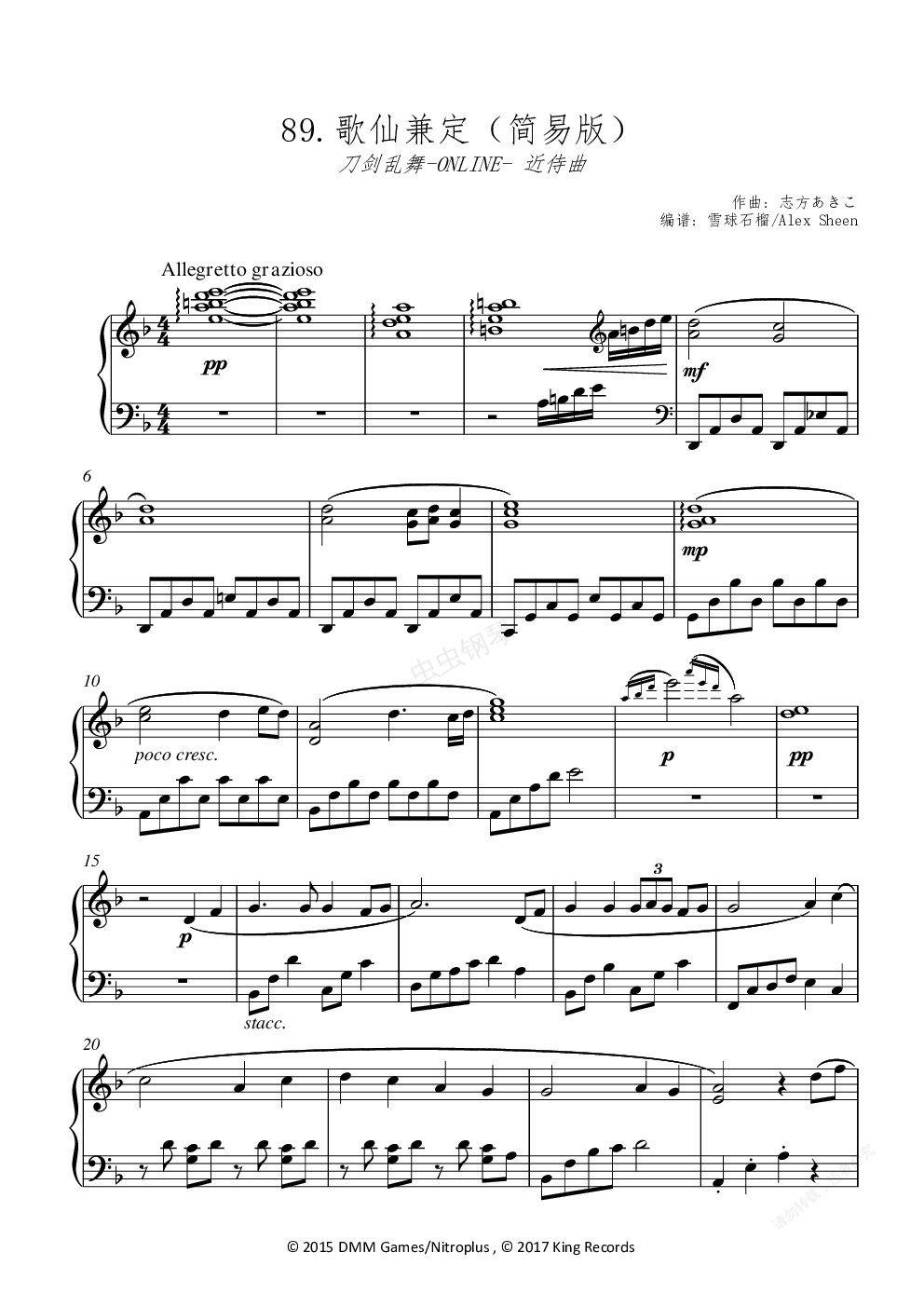 钢琴谱:歌仙兼定 近侍曲 【刀剑乱舞】(简易版)