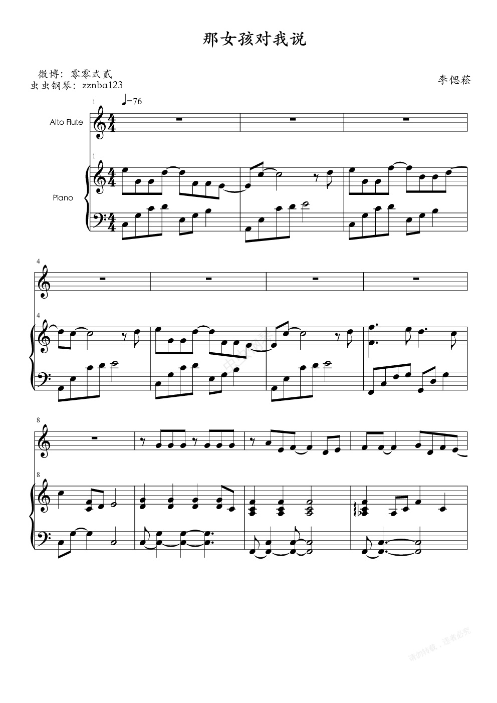 钢琴谱:低碳伴奏——《那女孩对我说》