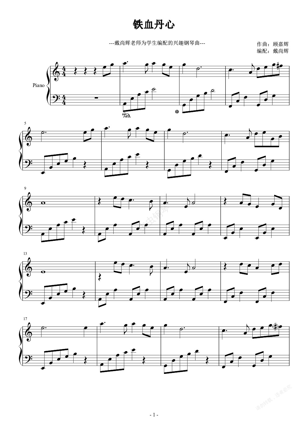钢琴谱:铁血丹心