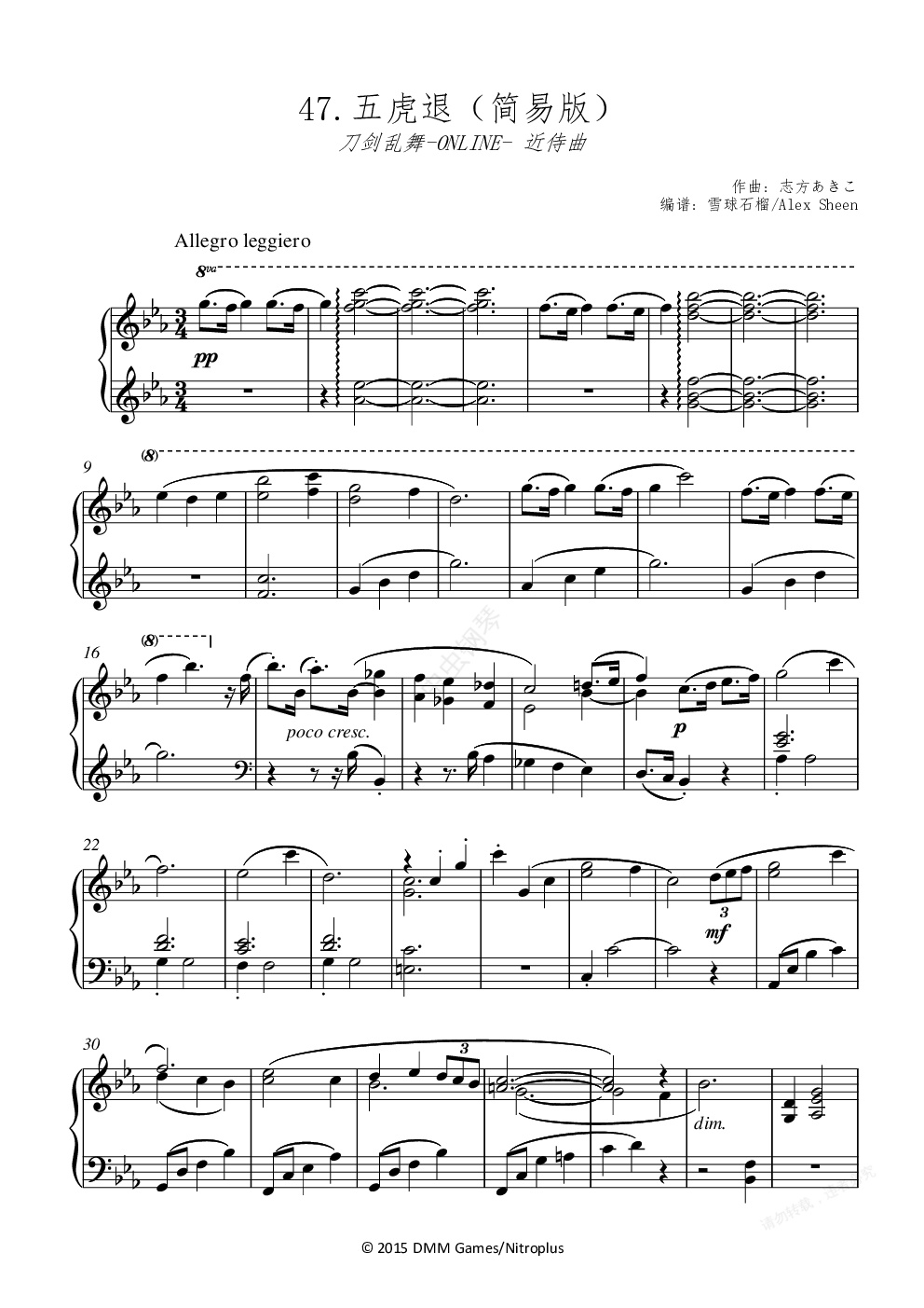 钢琴谱:五虎退 近侍曲 【刀剑乱舞】(简易版)
