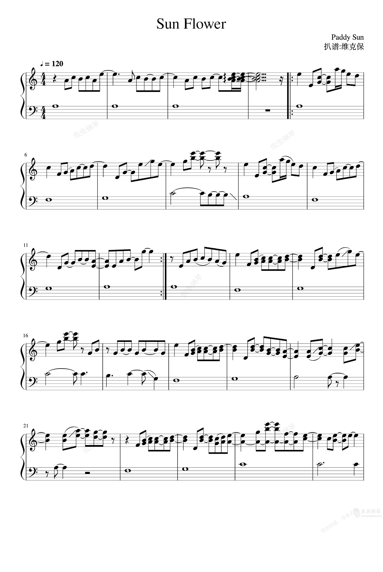 钢琴谱:Sun Flower 孙培博