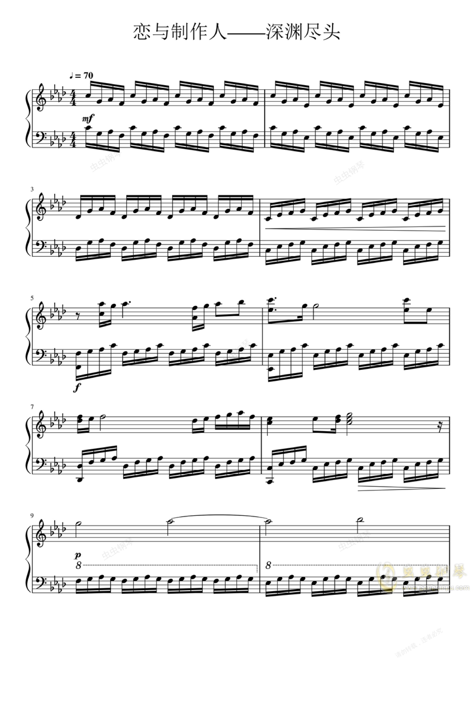 钢琴谱:恋与制作人——深渊尽头(个人改编)