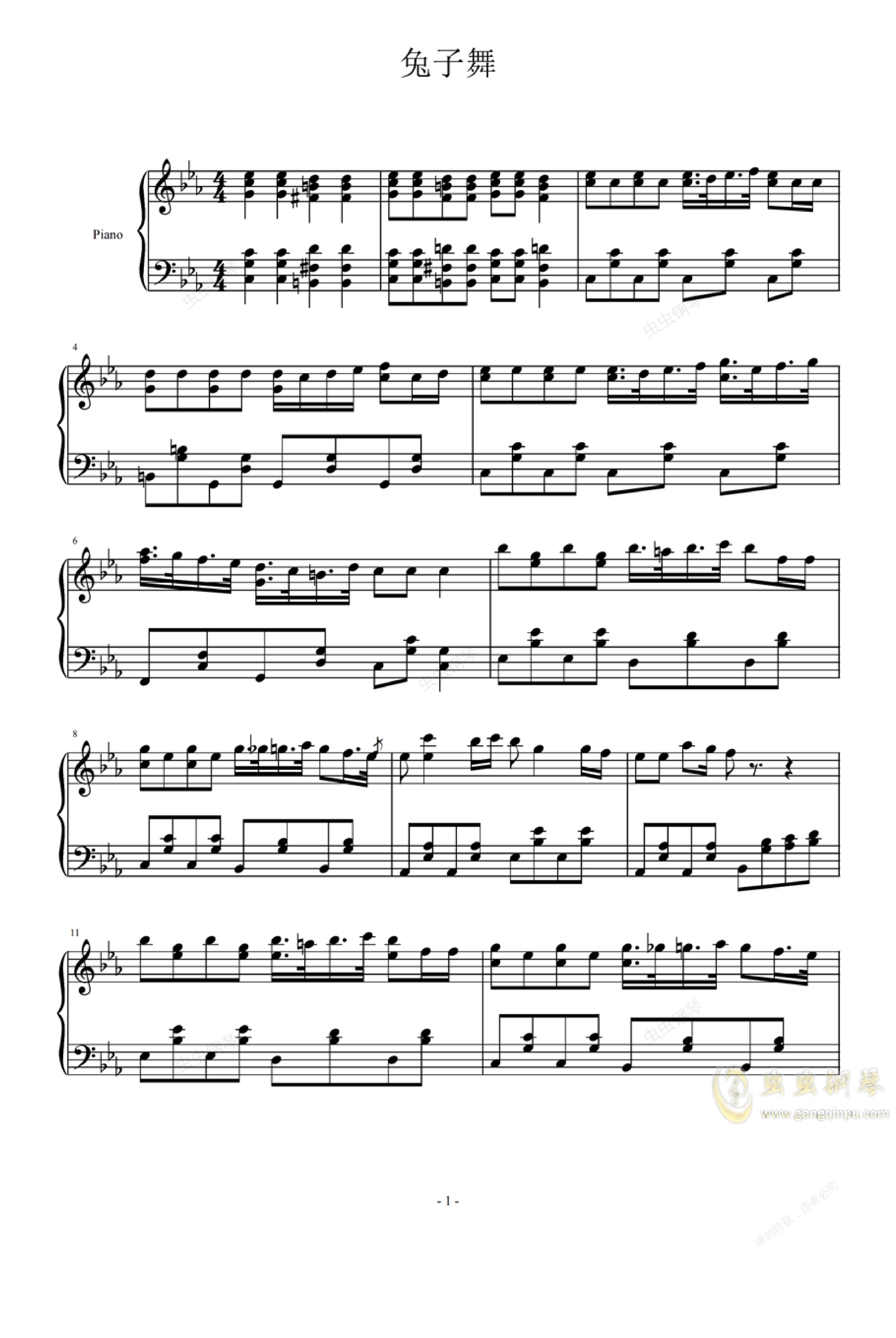 钢琴谱:兔子舞