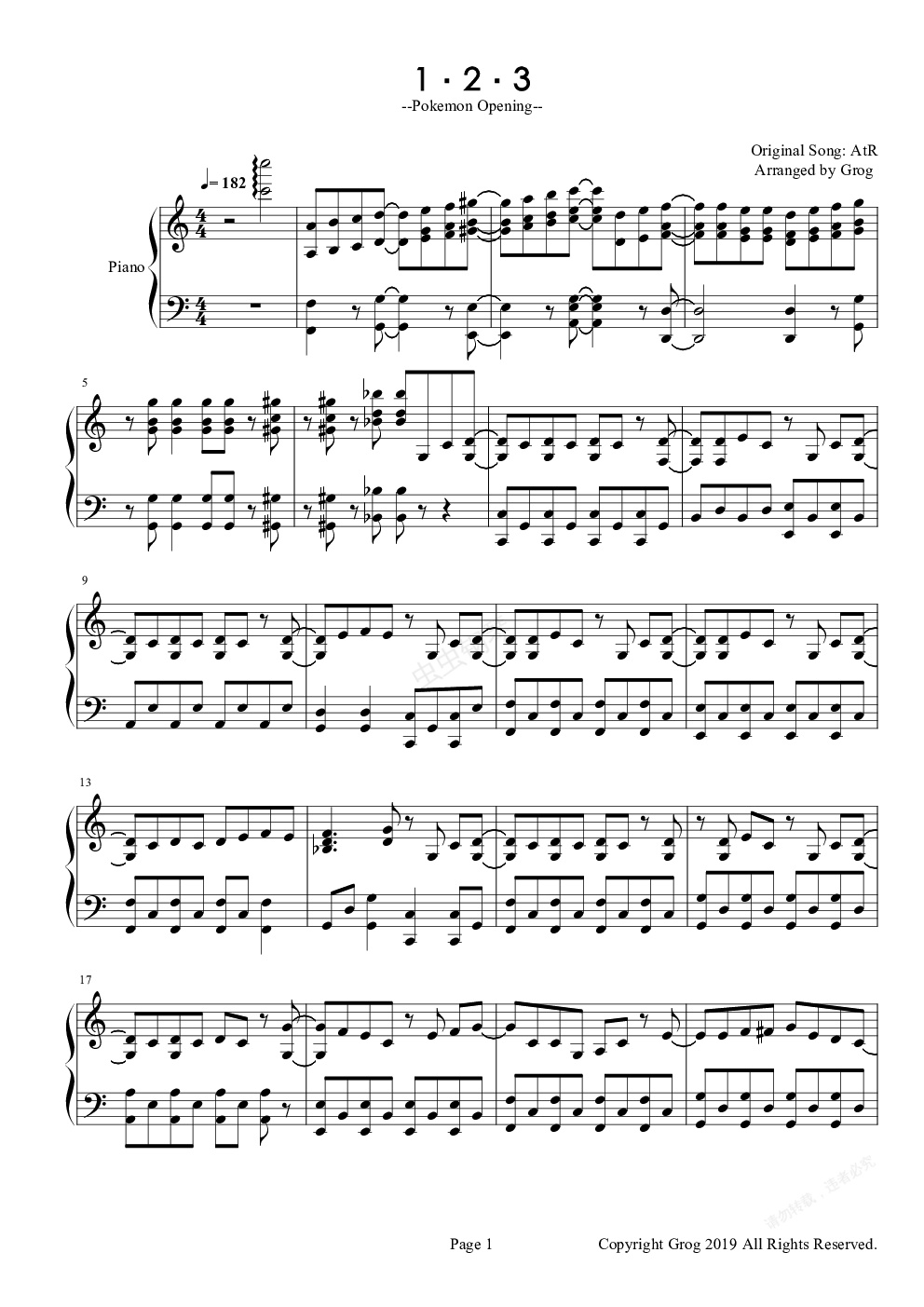 钢琴谱:1·2·3 宝可梦新无印OP1(Grog编配)