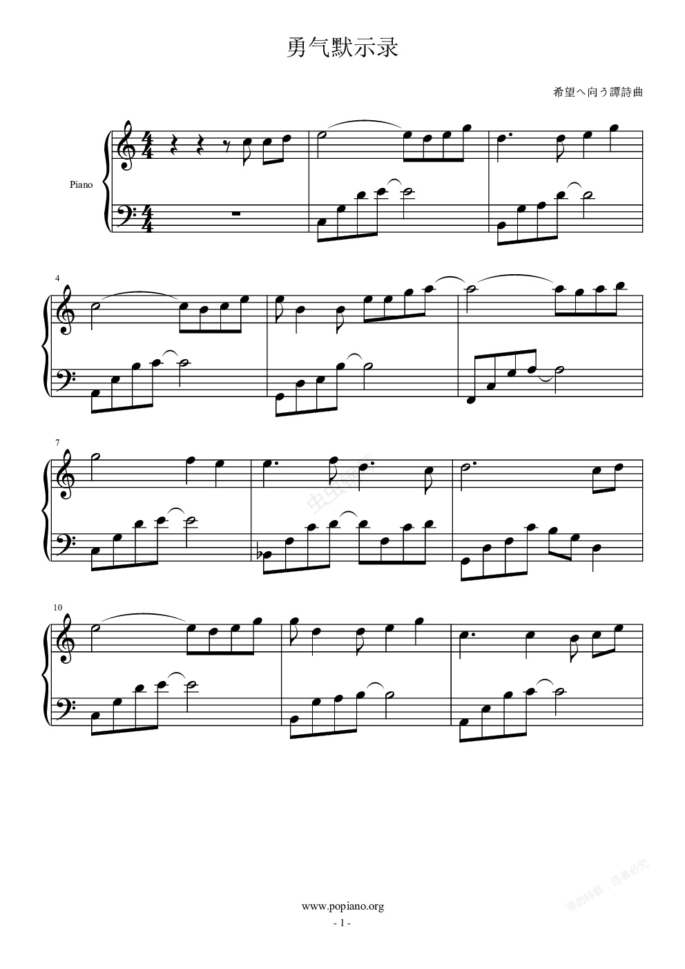 钢琴谱:《勇气默示录》希望へ向う譚詩曲