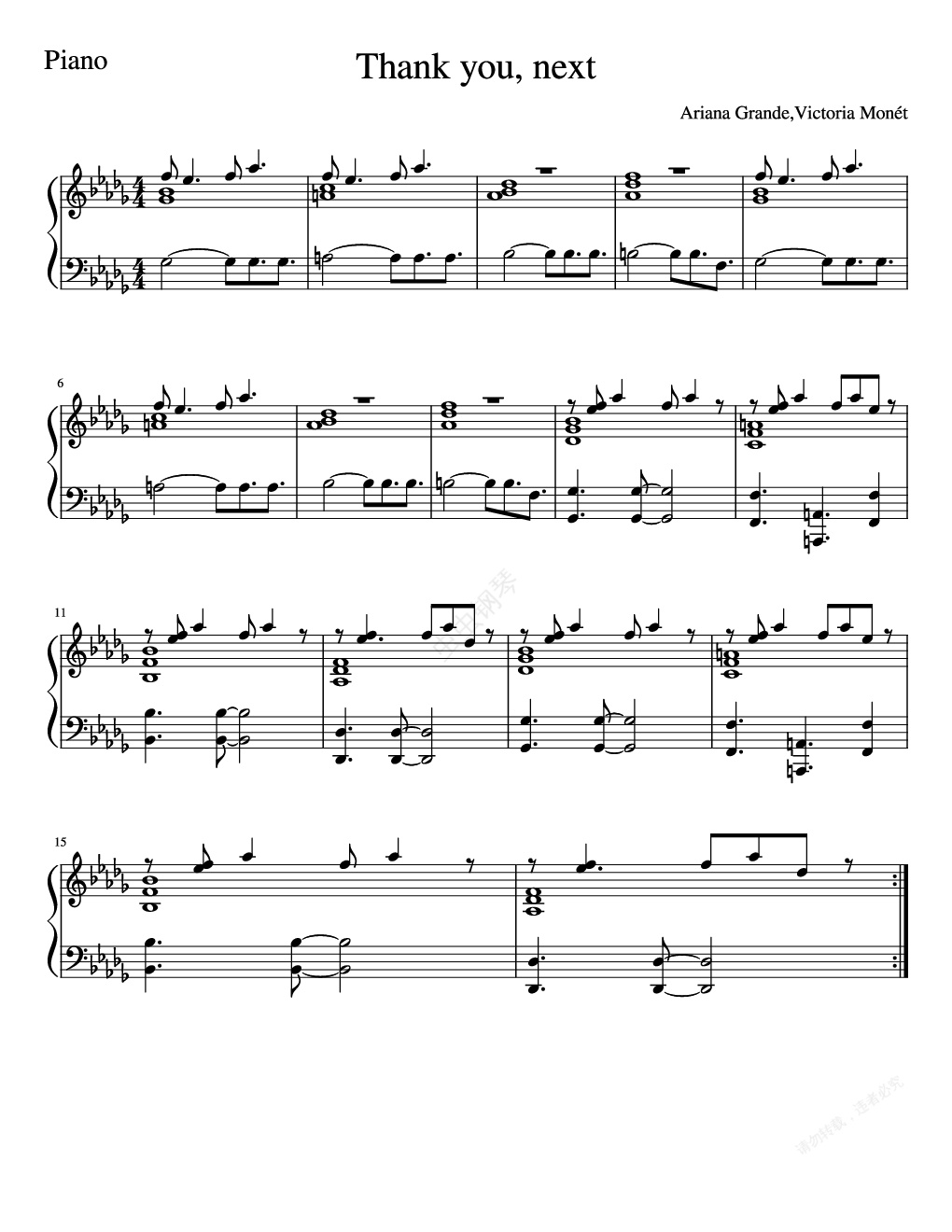 钢琴谱:thank u, next