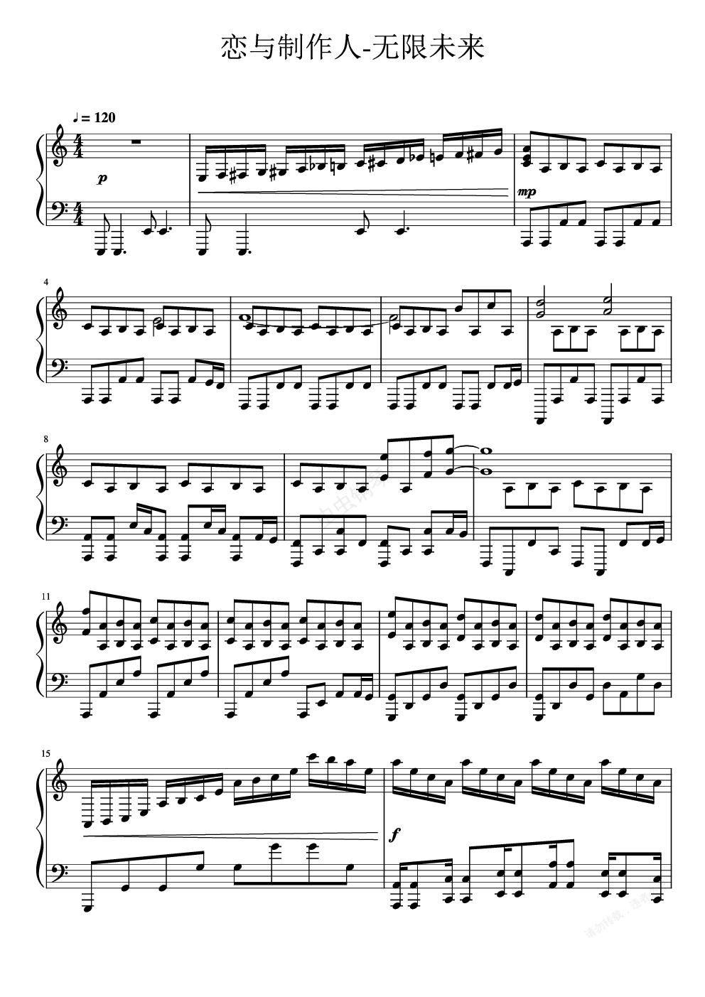 钢琴谱:恋与制作人——无限未来+星际穿越主题曲