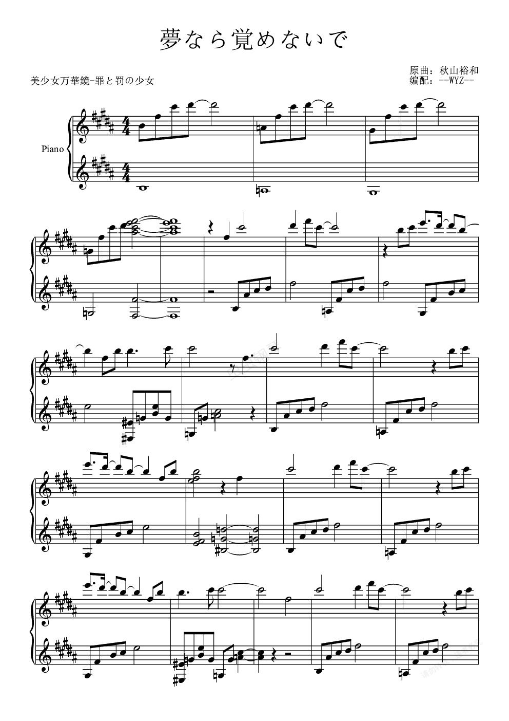 钢琴谱:夢なら覚めないで(美少女万华镜4插曲)
