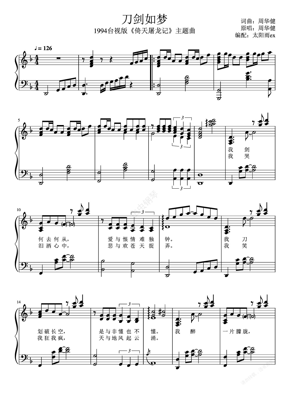 钢琴谱:刀剑如梦 94台版倚天屠龙记主题曲