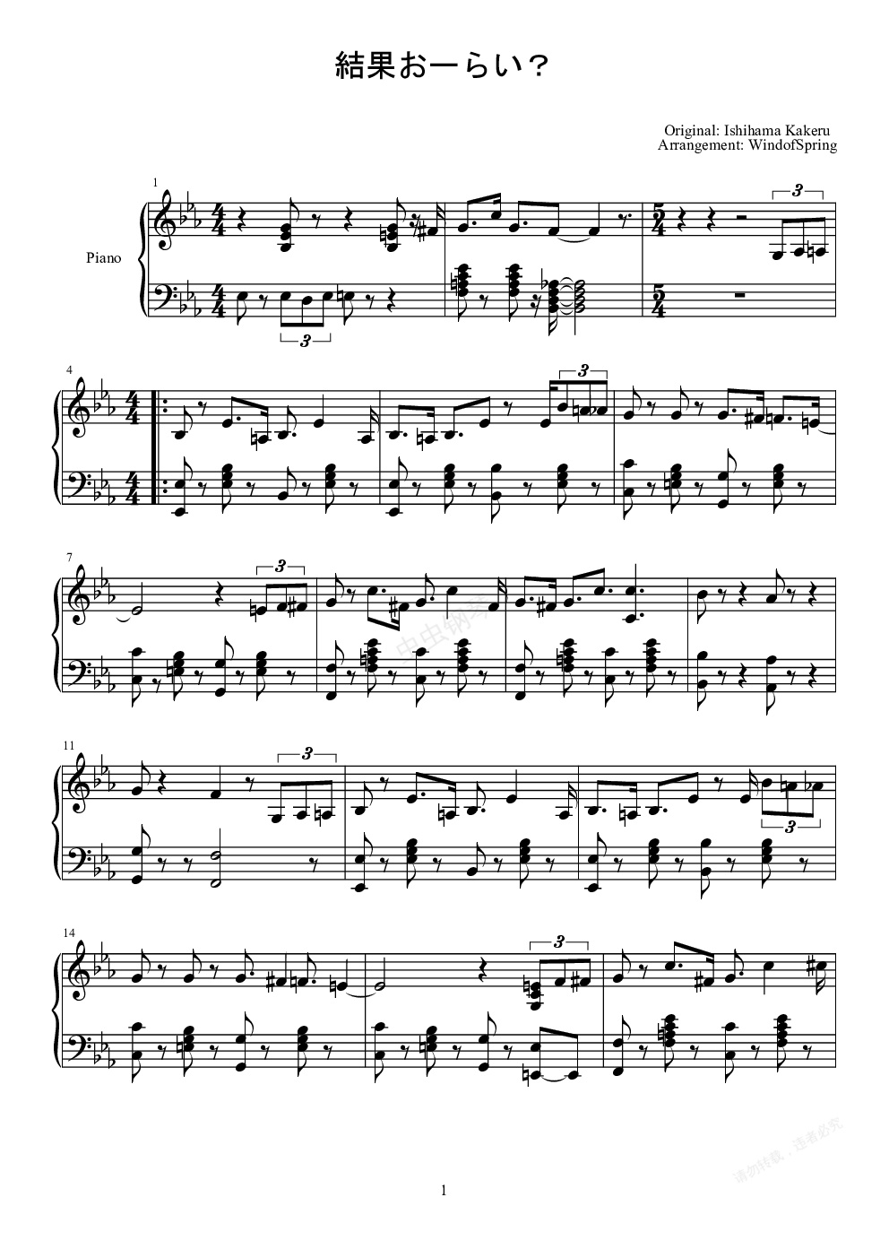 钢琴谱:結果おーらい?