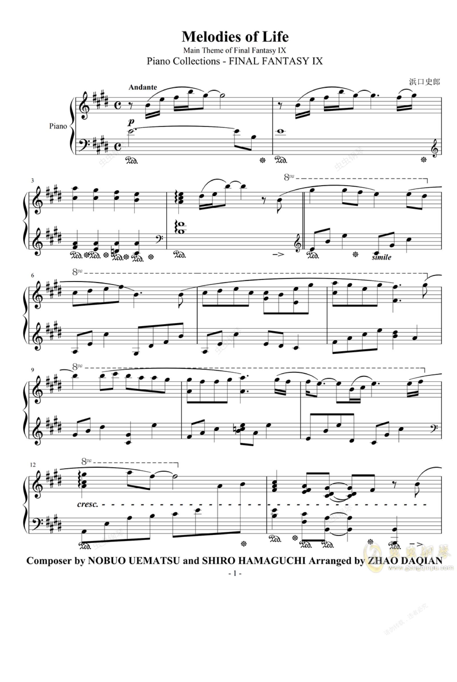 改编自《最终幻想IX钢琴曲集》(Piano - FINAL IX)专辑终曲据考证,该歌曲原为2000年7月7日发售的PS游戏《最终幻想IX》(FINAL IX)的插曲,由日本女歌手白鸟英美子(Emiko)演唱。同年由日本知名音乐人浜口史郎(Shiro)所作的钢琴版本,由路易斯·李林克(Louis)演奏。由于原版歌曲已经过时,而且后来有Susan翻唱过该歌曲,是《最终幻想音乐精选集2》( II:more music from FINAL)中收录的交响乐版。