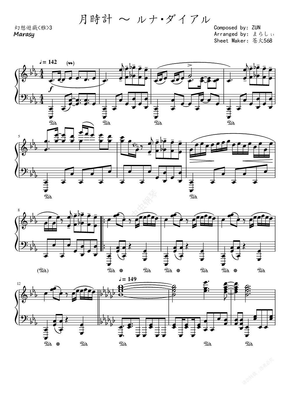 钢琴谱:【幻想游戏 雅3】【触手猴】月時計 ~ ルナ ダイアル