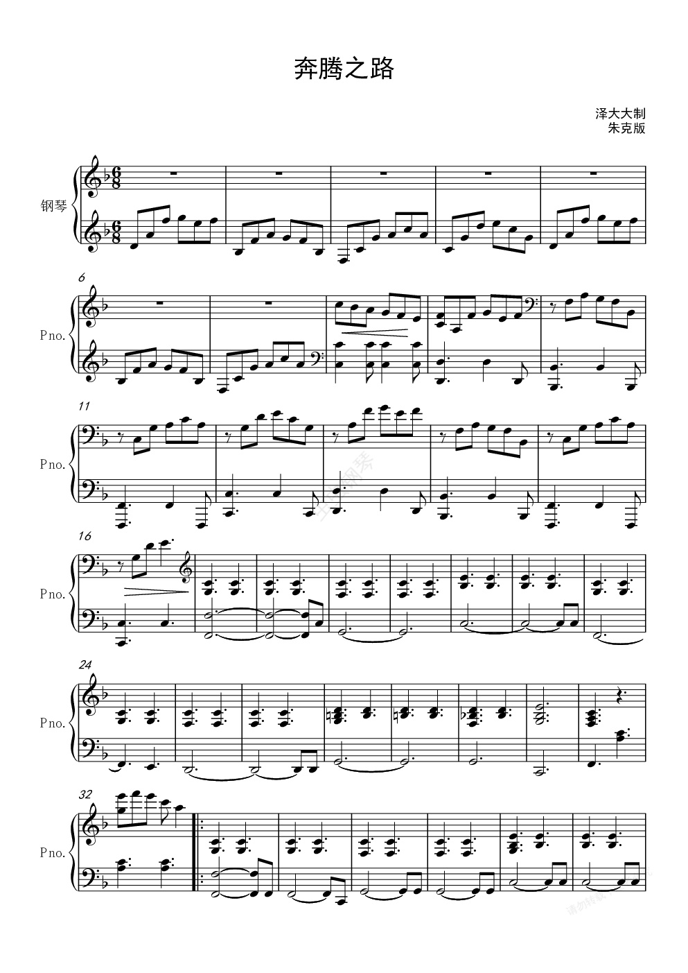 钢琴谱:奔腾之路(钢琴完美伴奏)