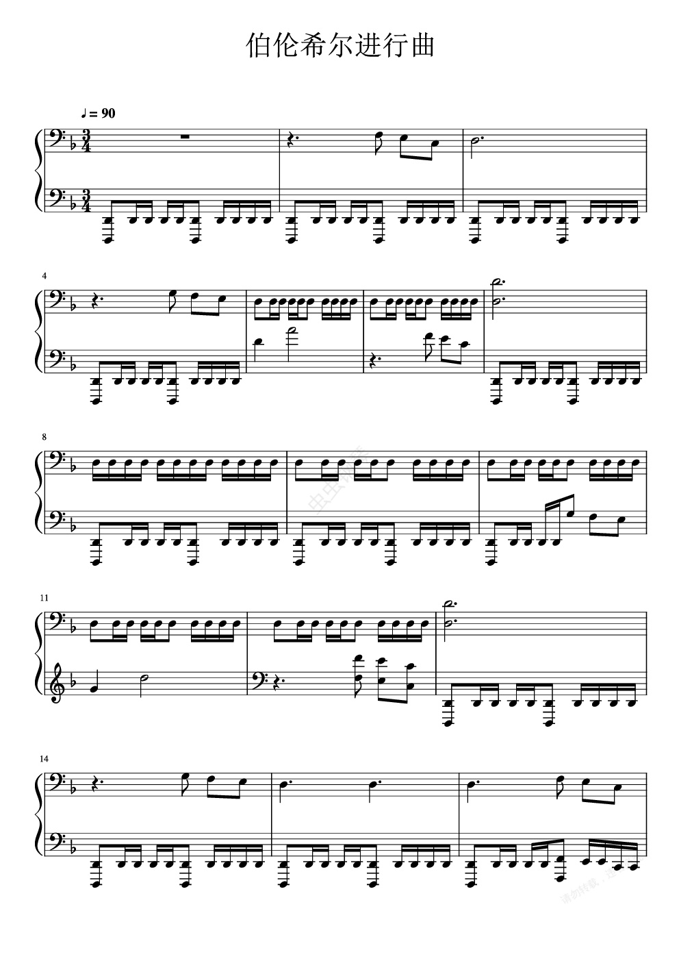 钢琴谱:小绿和小蓝——伯伦希尔进行曲+命运回响