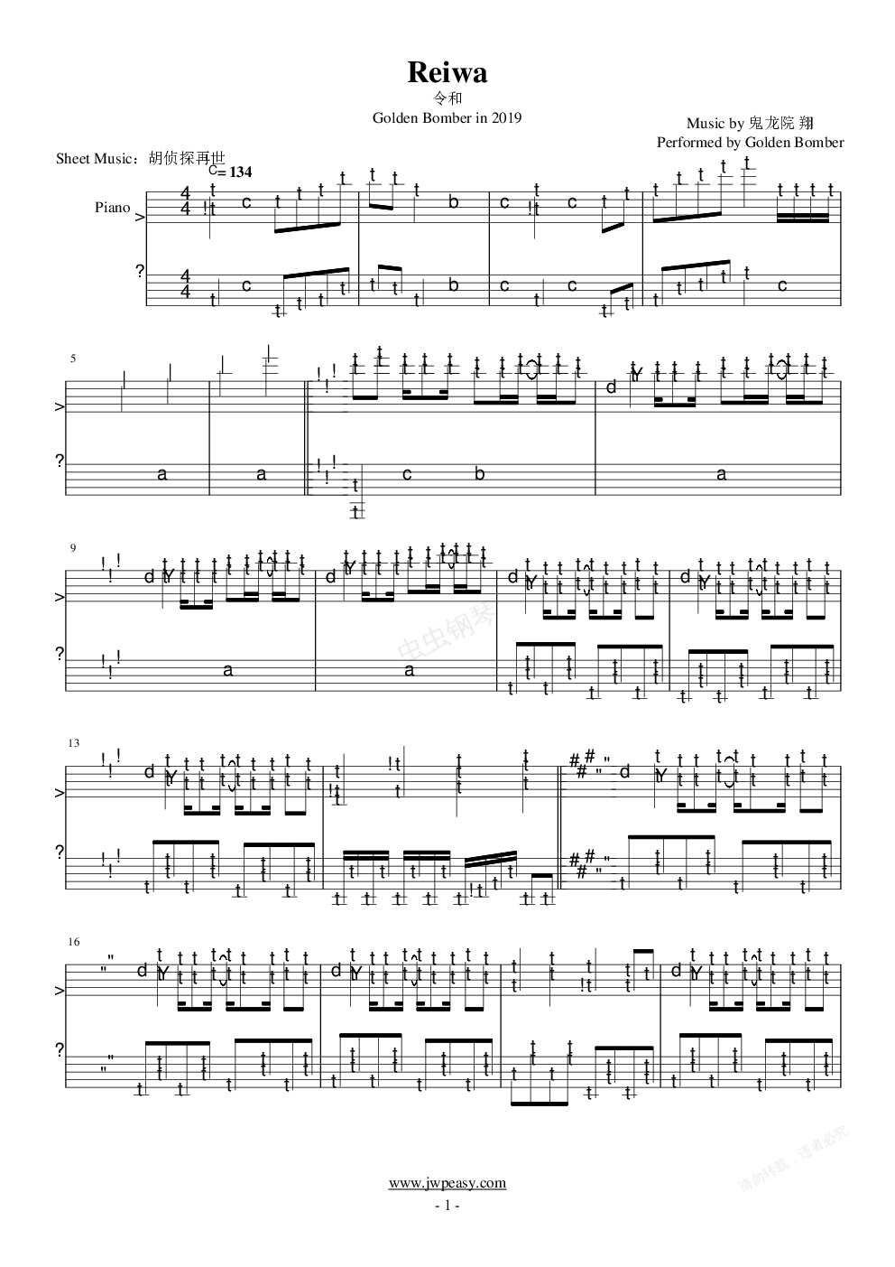 钢琴谱:【金爆】令和