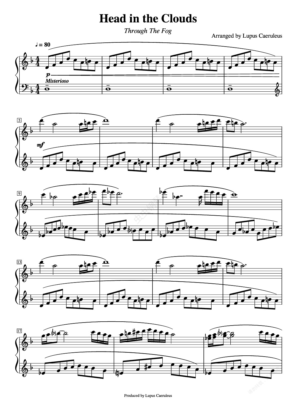 钢琴谱:Head in the Clouds(云端之上) - TTF(穿越迷雾)