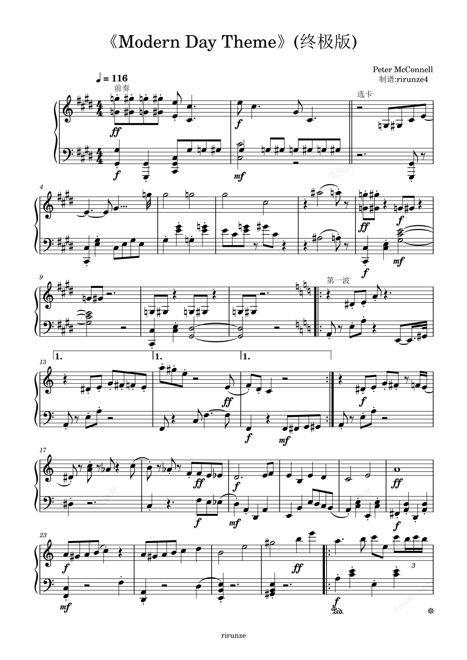 钢琴谱:植物大战僵尸2摩登世界钢琴谱(终极版)