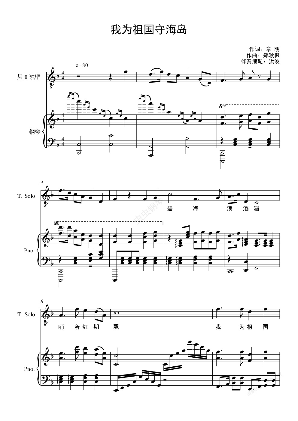 作词:章 明 作曲:郑秋枫 伴奏编配:洪波 版