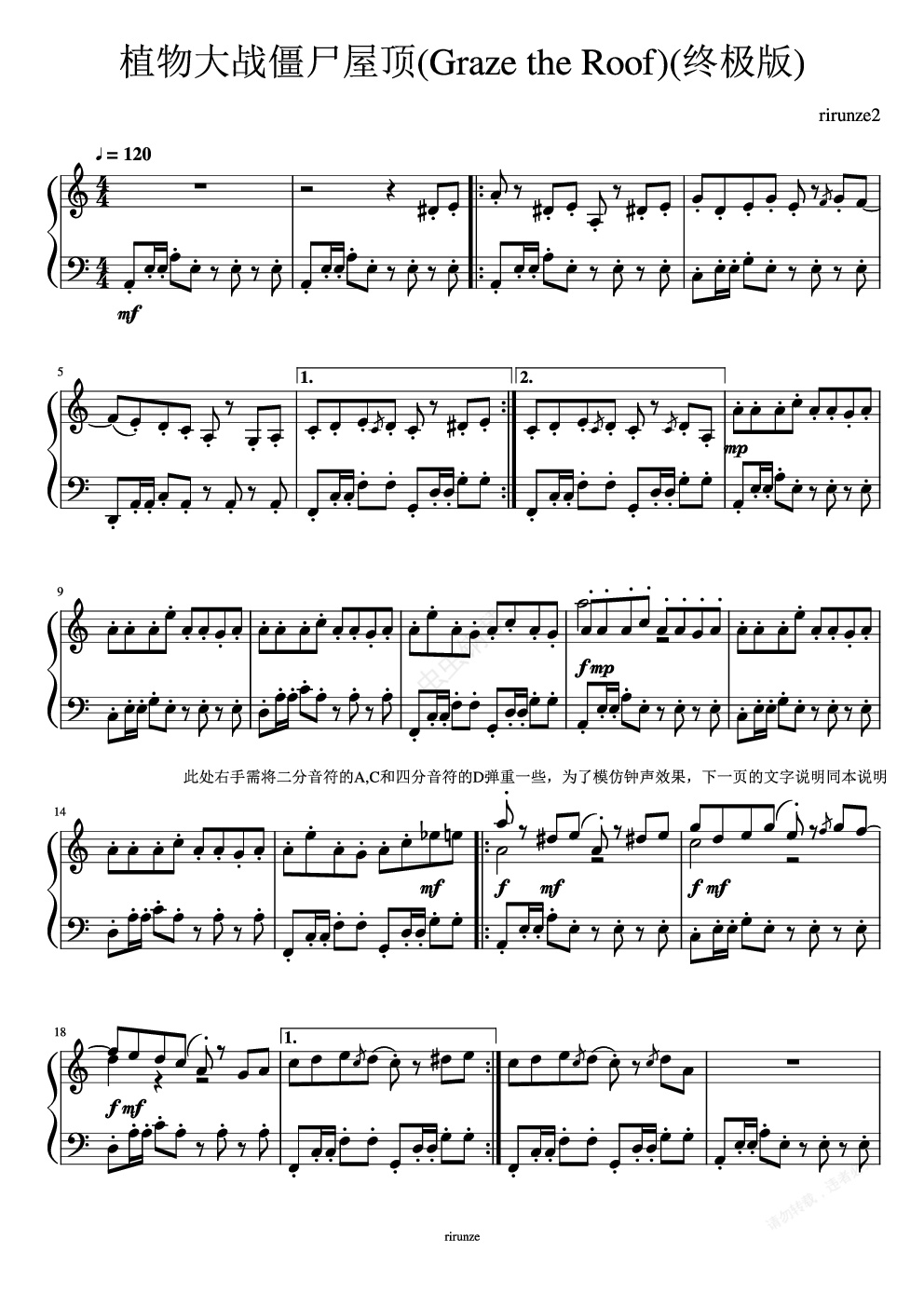 钢琴谱:植物大战僵尸屋顶(Graze the roof)(终极版)独奏钢琴谱