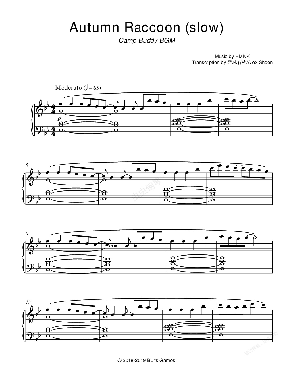 钢琴谱:Autumn Raccoon(Slow)【Camp Buddy】BGM