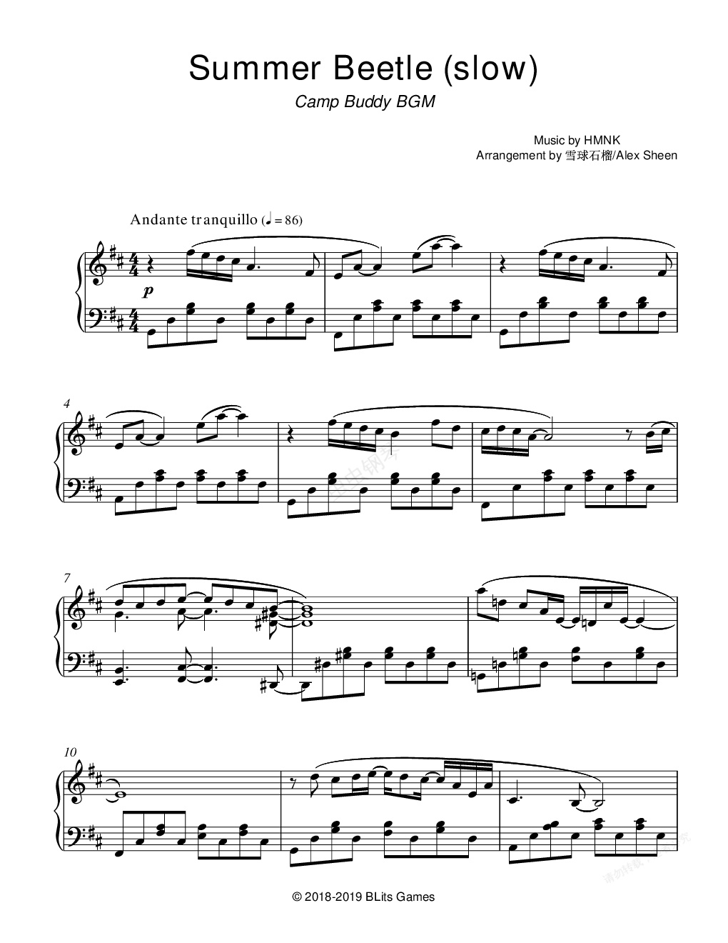 钢琴谱:Summer Beetle (Slow)【Camp Buddy】BGM