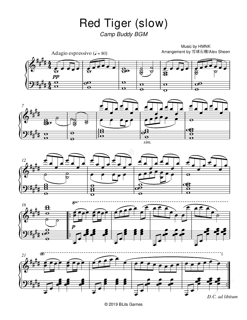 钢琴谱:Red Tiger(Slow)【Camp Buddy】BGM