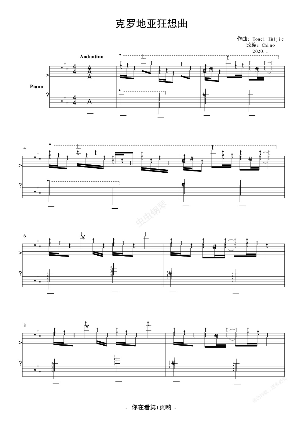 钢琴谱:(不一样哒)克罗地亚狂想曲