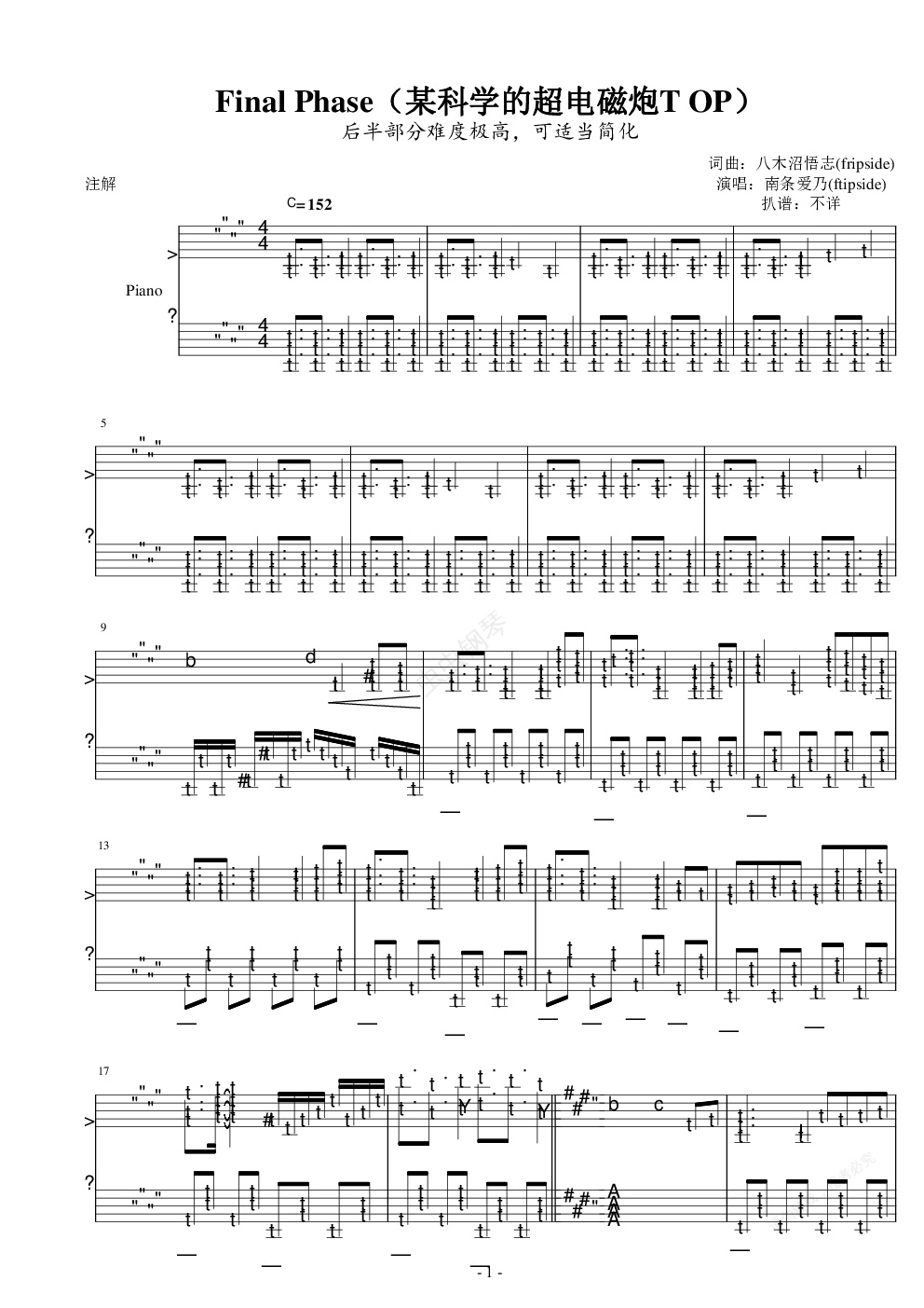 钢琴谱:Final Phase(某科学的超电磁炮OP1 完整版)