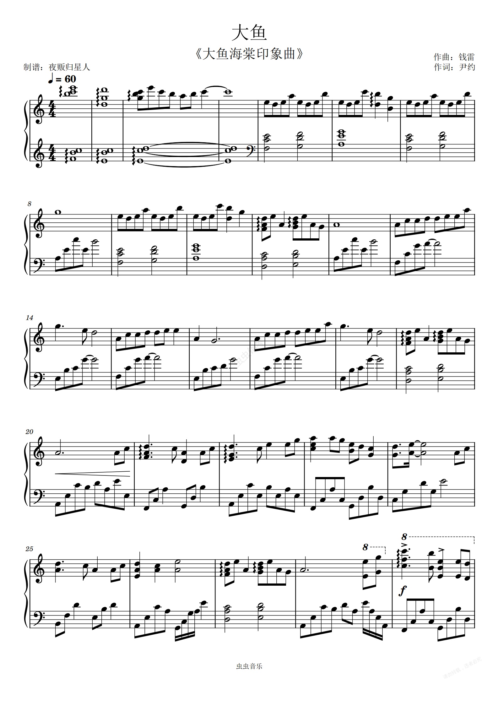 钢琴谱:大鱼海棠印象曲 最简单还原版本