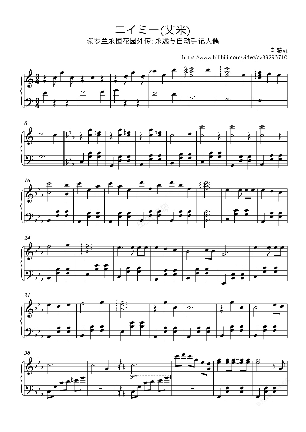 钢琴谱:エイミー【(艾米)《紫罗兰永恒花园外传》主题曲】