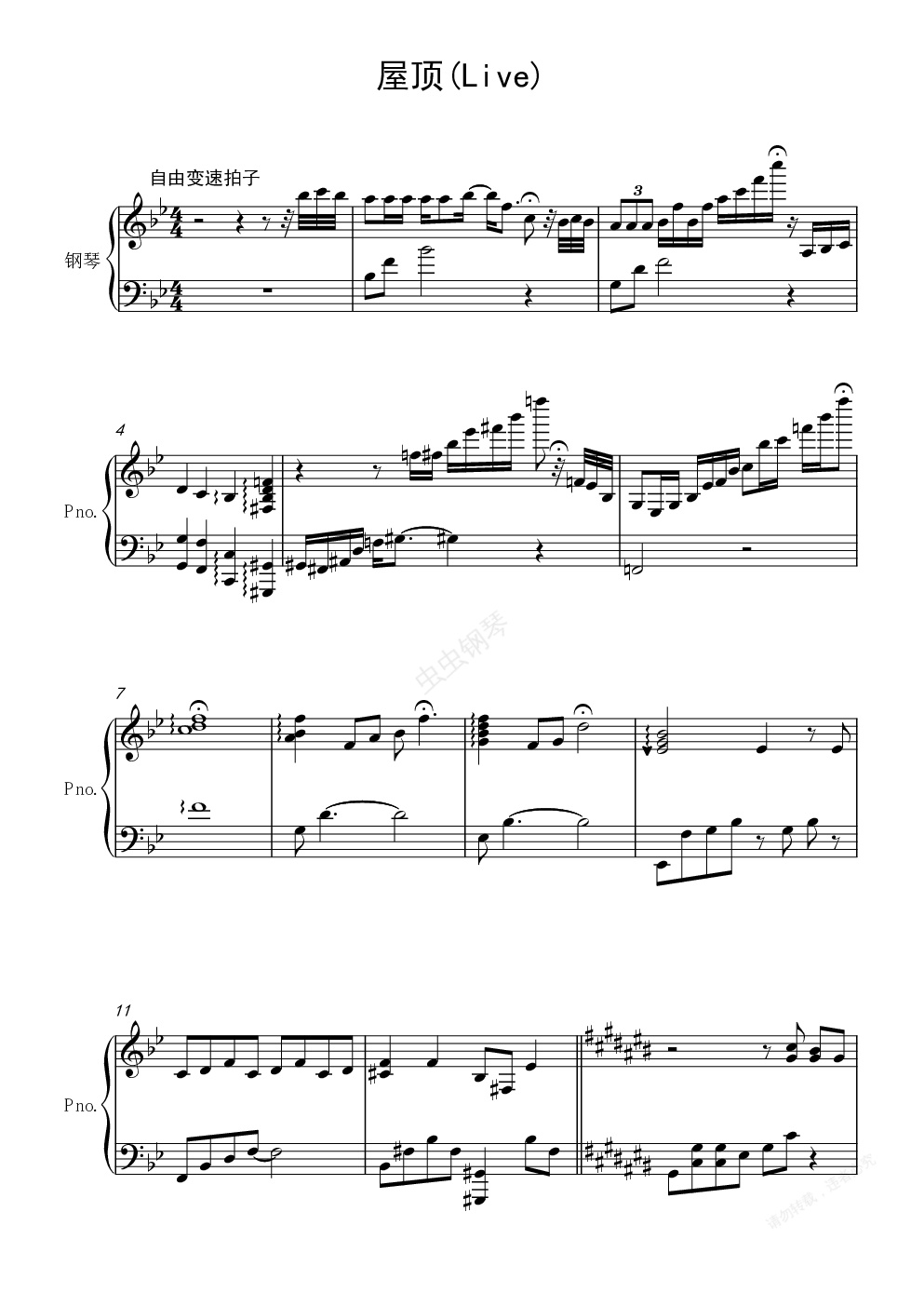钢琴谱:屋顶(Live) 梦想星搭档